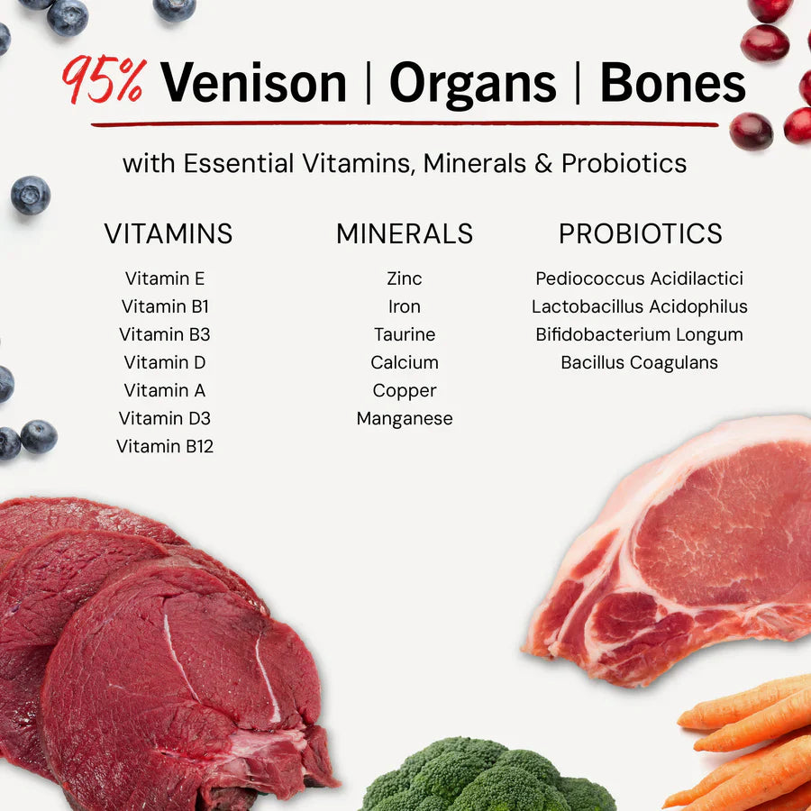 - 90-95% Meat, organ and bones - A true prey model diet