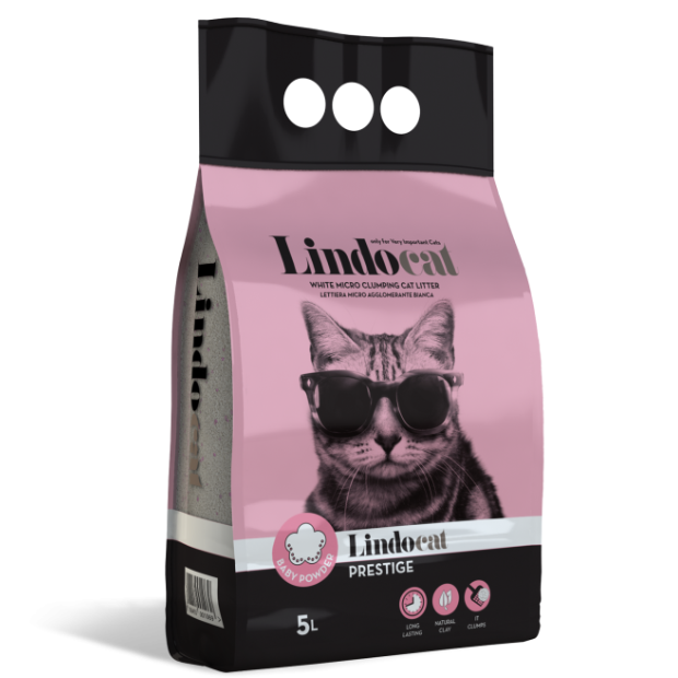Lindocat Prestige is a high-quality hygienic clumping litter made entirely of excellent bentonite clay in fine white granules, enhanced by the presence of pink granules. Lindocat Prestige stands out for its high absorbency and delicate fragrance of Baby Powder. The small-sized granules facilitate rapid clumping and the formation of solid lumps together with less product waste.